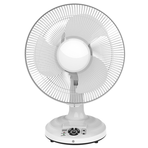 Thuisgebruik Oplaadbare Usb Draagbare Koeling Ac Dc Tafelventilator Met Led Licht