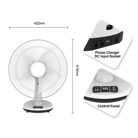 Lader Fan Oplaadbare Usb Draagbare Ac Dc Tafel Ventilator Met Led Licht